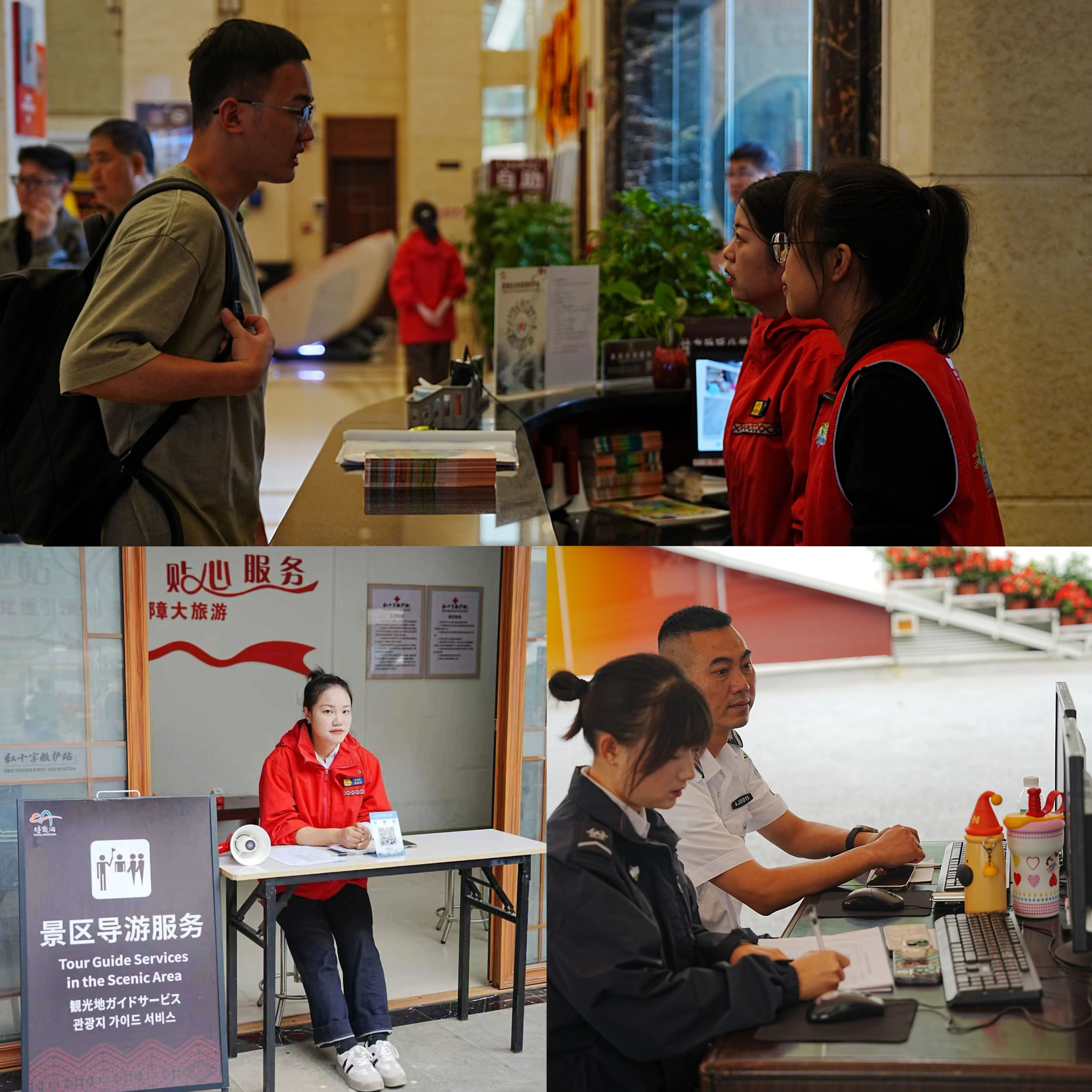 作为游客进入景区的第一步,他们坐在窗口前快速核验信息、精准打印门票,在闸机旁耐心引导分流,用重复千百次的动作,让每一位游客的入园之路更加顺畅。