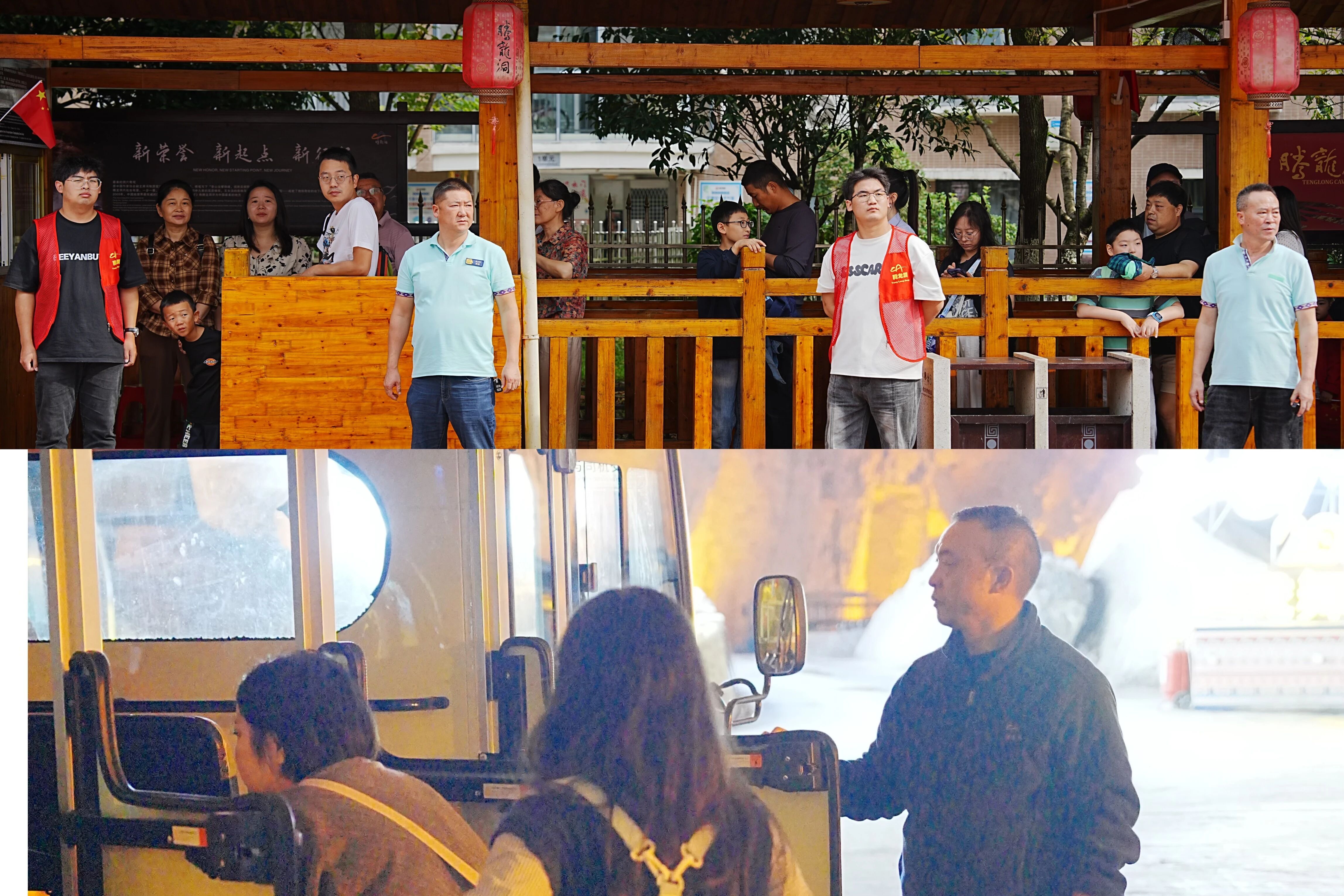 他们稳稳握着方向盘,往返于游客中心、入口、洞口与洞内之间,无论烈日还是洞内微凉,都准时准点,把安全与便捷送到游客身边。