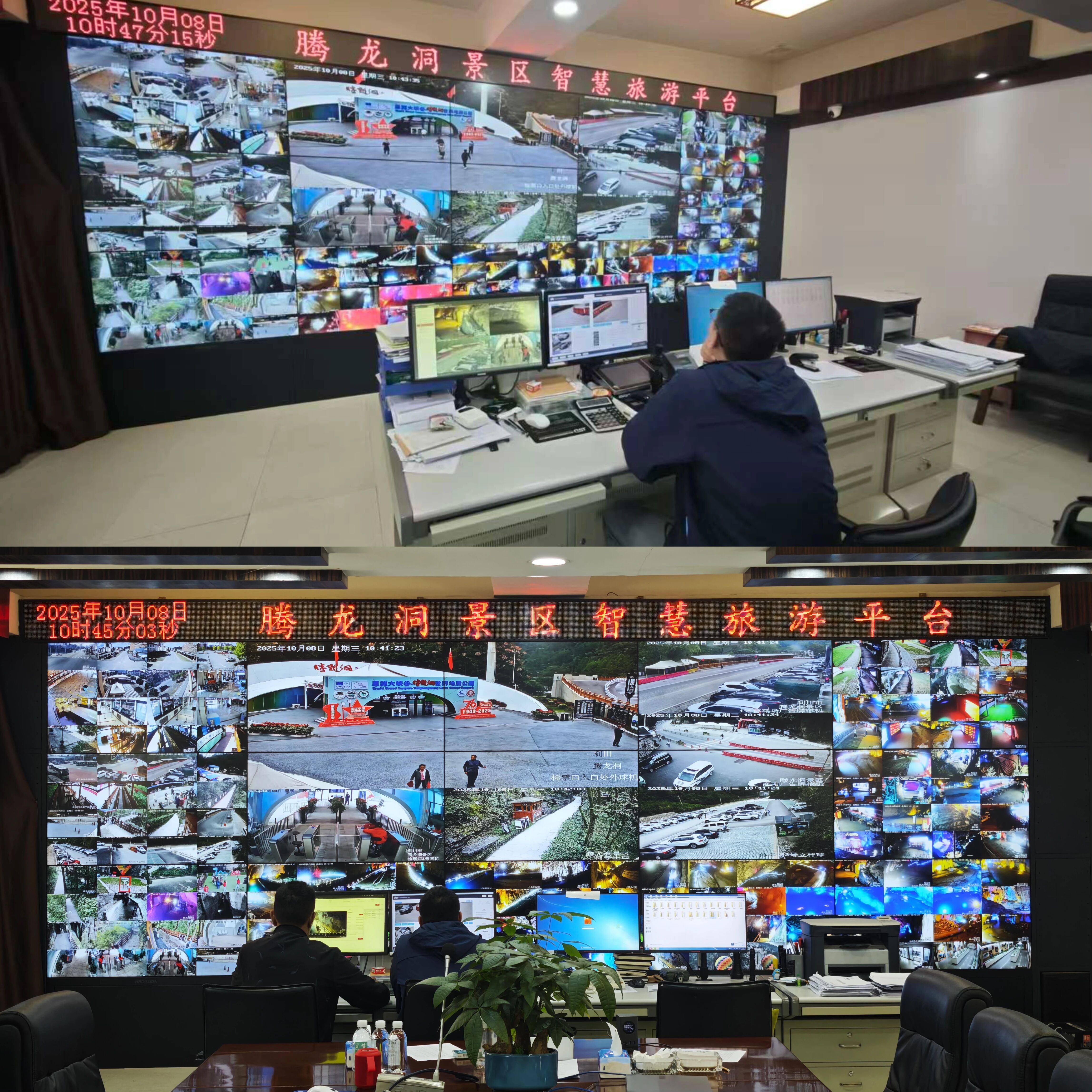 这里是景区的"智慧大脑",工作人员全天候紧盯监控大屏,实时掌握客流动态、设备运行与环境变化。他们时刻保持警觉,快速响应每一处需求与突发状况,确保景区运行平稳有序,守护游客安全,让景区运行井然有序。