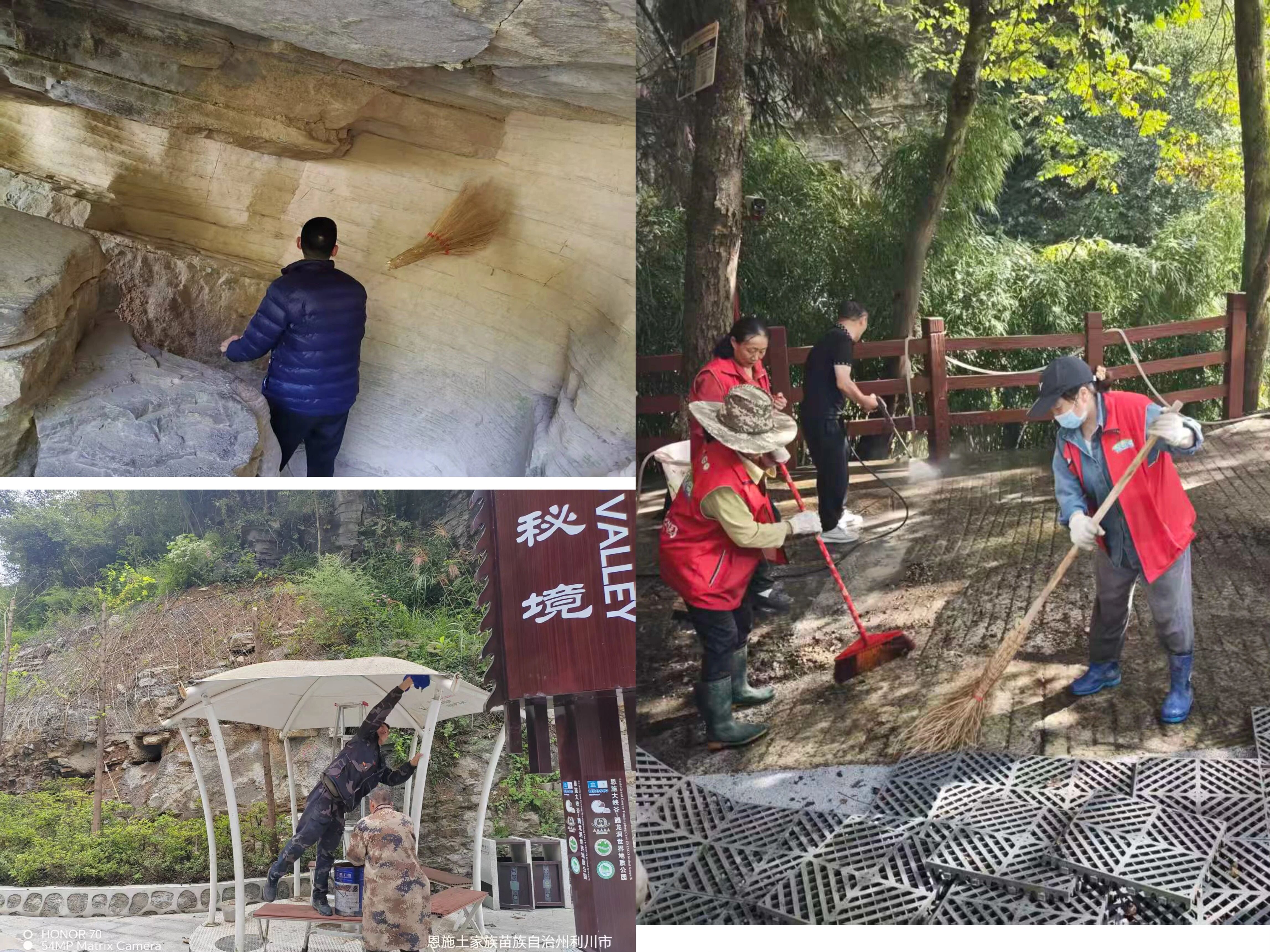 她们手持扫帚与垃圾夹,日复一日的打扫着游客中心及景区的每个角落,默默穿梭于景区的各个角落,用双手守护着景区的清爽和美丽,把舒适干净的环境带给每一位到来的游客。