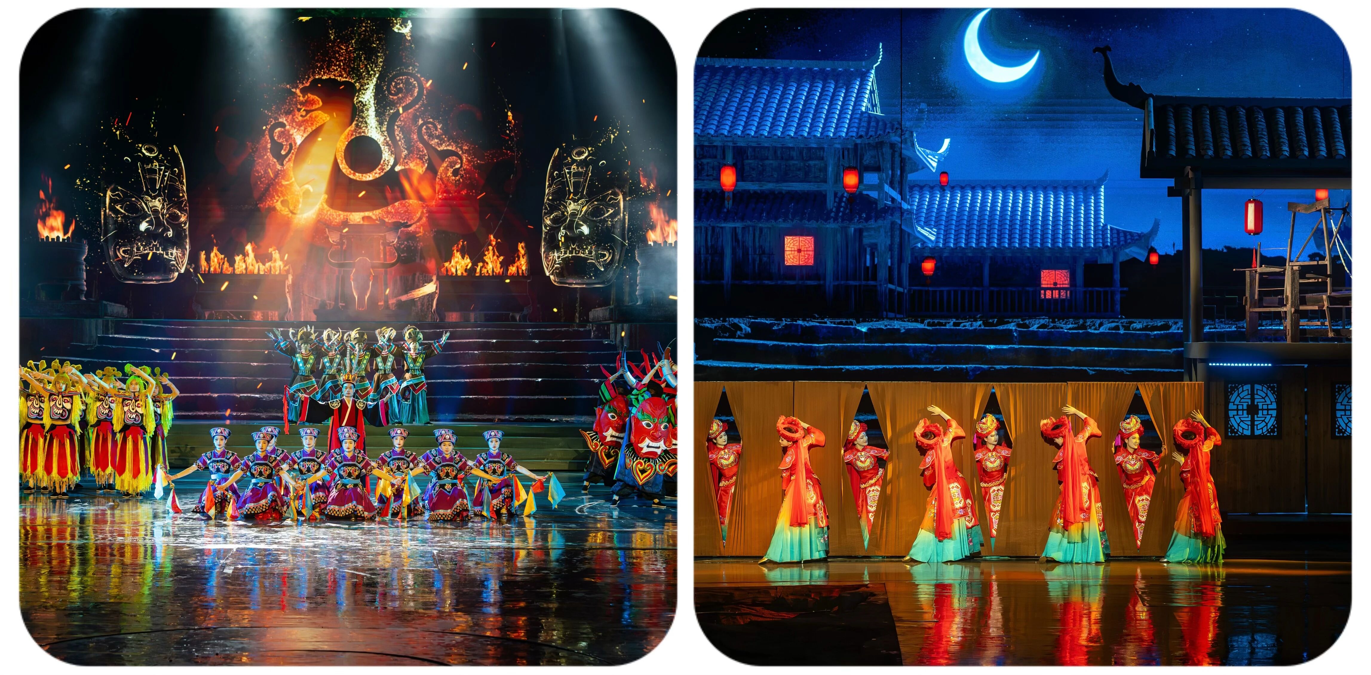 舞台上《夷水丽川》的演员们身着土家民族服饰,台前是惊艳的歌舞与故事,幕后是反复的排练与准备。假期场次加量,他们依旧精神饱满,用一场场精彩演出,赢得阵阵掌声,为游客留下难忘的记忆。