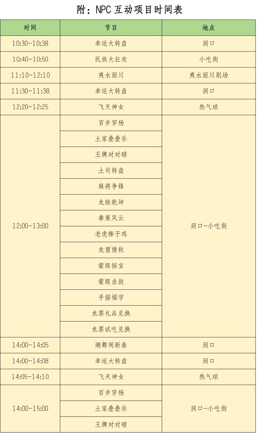 2、NPC互动项目具体时间安排如下表;
